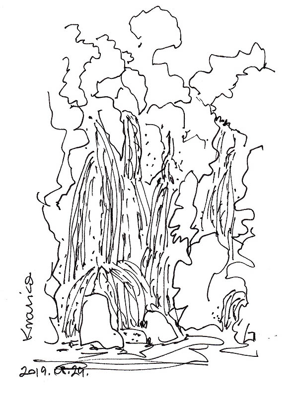 A vízesés lentről, a teraszról. Itt lesz csuromvizes az ember