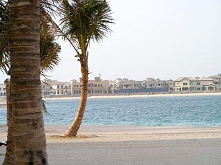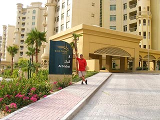 Ez az első pálmasziget, így ez már 70%-ban kész van. A törzsén már megindult a közlekedés, és ezerrel folyik a törzsön lévő többemeletes társasházakban lévő lakások helyszíni értékesítése. Itt is természetesen jelen van a terepasztal, és hatalmas kivetítők. A törzsön futó 4×4 sávos autópálya végén, ahol a levelekhez lehetne lekanyarodni, biztonsági őr állja utunkat, de már látható, hogy mögötte építési terület van, behajtani csak teherautóval szabad. Visszafordulunk, és az autópálya mellett futó szerviz út szélére parkolok. Gyalog járjuk be a pálma törzsét, ahol pompás társasházi épületek állnak a felső tízezer rendelkezésére. A tengerpartra is lemegyünk, ami az épületek mögött van. Rálátunk a távolban lévő Burj Al Arab szállodára, valamint a pálma levelein épülőfélben lévő fényűző villarengetegre, melyek közül egy sem lesz híján saját fehér homokos tengerpartnak. A pálma törzsének tengerpartja is fehér homokos, pálmafákkal teli. Kis járda kígyózik a zöld fűben, ami összeköti a társasházakat. Indiai munkások serénykednek a növényzetben, és mikor meglátnak barátságosan ránk köszönnek. Utólag láttam, hogy egyénileg nem nagyon merészkedett ide senki, csak azokat vitték a tengerparton körbe, aki lakást akart vásárolni.