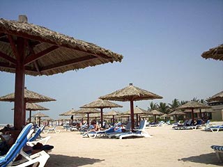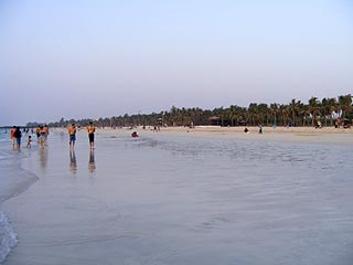Az amerikai, francia, spanyol, arab, indiai, pakisztáni, filippin, néger és kínai emberek színes kavalkádja fogad. Az indiai nők száriban fürdenek, az arabok csadorban. Az európai és amerikai nőkön mini tanga és kis cicifix. Senkit nem zavar a másik. Amerikai life guardokat megszégyenítő terepjáróval és őrtornyokkal van felszerelve a strand. Legnagyobb meglepetésünkre egy fehér apuka magyarul terelgeti két szőke gyermekét a parton, majd angolul kedélyesen elcseveg egy fekete férfivel, aki valószínűleg a kollégája. A tenger itt is ugyanúgy 38 fokos, de a lemenő nap sugarain már érezzük, hogy 1-2 órán belül akár 40 fok alá is csökkenhet a levegő hőmérséklete.