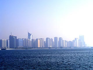 A nyílt tenger felőli részre koncentrálódik a belváros, 10-20 éves felhőkarcolókkal, amik az emírségekben már régi épületeknek számítanak. Ha a szárazföld felől érkezünk, a földnyelv jobb oldali távoli csücskében helyezkedik el a kikötő és a halpiac, ahova sorompón keresztül szabadon be lehet jutni. A kikötőből csodás látványt nyújt a város felhőkarcolóinak rengetege, ahogy a tenger fölé magasodik a tengerparti promenád mögött közvetlenül. A földnyelv bal oldali távolabbi csücskén helyezkedik el a királyi palota, ami egy gyönyörű épületegyüttes, de bejutni nem sikerült. A királyi palota mellett szabad strand látható, amit előszeretettel használnak a helyiek. Ott is minden további nélkül lehet bikiniben napozni. A királyi palotától jobbra egy híd vezet egy mesterséges szigetre, amin egy hatalmas, sátortetős bevásárló központ van nagyon magas toronnyal, amiben panoráma étterem lesz, és aminek aljánál korcsolyapályát építenek. A torony és a korcsolyapálya még nincs teljesen kész. A bevásárló központ előtti földnyelven a régi Abu Dhabit bemutató úgynevezett heritage village , azaz skanzen látható, ahonnan szintén szép a kilátás a városra. A városban kerestük a szukot, de a helyiek csak nevettek, és mondták, hogy akkor menjünk át Quatarba, mert itt csak Mall, azaz bevásárló központ van. Mindenhol csak bevásárlóközpont, már kezdett unalmassá válni. Sétáltunk a belvárosban, gyönyörködtünk a felhőkarcolókban, és a közben zengő imám imádságra hívó hangjában. Egy indiai étteremből a piszok és a büdös miatt kifordultunk, és egy Pizza Hut-ban szentségtelenítettük meg az arab konyhát 🙂 Ismét hajnalban értünk haza.