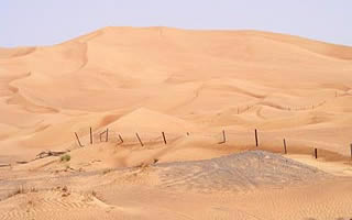 Következő utunk Abu Dhabiba vezet, ami Dubaitól délre kb 200 km-re található. Korán kelünk, és megelőzve a Dubai csúcsforgalom eszetlen tombolását már robogunk is Abu Dhabi emírség felé. Abu Dhabi városa mellett elhaladva folytatjuk utunkat a 4×4 sávosról 2×2 sávosra szűkülő autópályán a sivatagi homokdűnék közt. Tudom jól, hogy jobbra kietlen tengerpartok nyújtóznak 10 km távolságban, ahova mindenképpen le szeretnénk jutni. Bármelyik jobbra vezető kis sivatagi úton is kanyarodunk le, a tengerpart előtt sorompó, és marcona katona állja utunkat. Lezárt terület, azonnal forduljon vissza, figyelmeztet a tábla. 5 letérés után feladom. Abu Dhabi városától 200 km-re délre elfogy a türelmem, és a pályáról balra térek le a mélysivatag irányába, ahol 200 km távolságban kis beduin települések vannak olvasmányaim szerint. Az 1×1 sávos sivatagi betoncsík mindkét oldalán drótkerítés húzódik, és a sivatag homokjából csövek villannak elő.