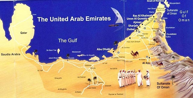 Az Egyesült Arab Emirátusok az 50-es években jött létre. Hét emírség frigyének köszönhetően alakult meg a ma egyik legsikeresebb és leggazdagabb ország Dubai és Sharjah a két emírség, ahol az építkezések csúcsra vannak járatva. Szinte nincs olyan talpalattnyi föld, amit ne buldózerek túrjanak, és ne felhőkarcolókat rakjanak össze hatalmas daruk. Abu Dhabi emírség a legnagyobb alapterületű, aminek jelentős része sivatag, ahol földgáz és olajkitermelés folyik. Az emírség központja Abu Dhabi város, ami a legjobban elkészült emíségekbeli város a maga 10-20 éves felhőkarcolóival. Ajman, Umm Al Quwain és Rash Al Kaimah egymást követik az arab öböl partján északi irányba. Ezek az emírségek is bekapcsolódtak az építkezési versenybe, de itt csak pár felhőkarcoló van, a többinek még csak a tervei, vagy a kezdeti építkezései vannak meg. A tengerbe nyúló mesterséges szigeteiket, és a rajtuk lévő lakóparkokat ők is elkezdték építeni, de még egy évtized, mire be is fejezik. Az Indiai Óceán partján(nyugati part) Fujarirah emírség fekszik, ami leginkább megőrizte a régi arab bájt, amivel akármelyik arab országba találkozhatunk. 1-2 felhőkarcolón, és 1-2 luxushotelen kívül még nem sok modern látható, csak azok a hatalmas táblák, melyek üres területek előtt állnak, és hirdetik milyen megaprojekt megvalósítása indul be ott hamarosan. Az emírség 1975-ig teljesen el volt szigetelve mindentől, mert a Hajar-hegységen keresztül akkor épült meg az első út.