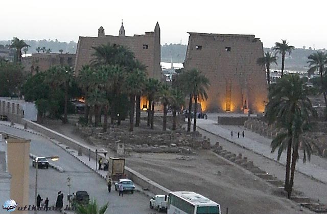 A luxori templom bejárata a szálloda ablakából