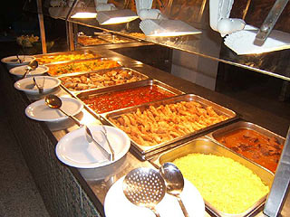 Minden nap volt marha-hal-csirke-néha birka hús, különféle elkészítéssel. A 12 nap alatt ismétlés nem volt. Sajna a reggeli mindig ugyanaz volt. Hot dog, virsli, főtt tojás, tükörtojás váltakozott a paradicsomos babbal, rántottával, tejberizzsel. Persze mellette volt még 3 féle kelttészta, saláták, dinnye, stb. Vacsorához 0,9 literes víz 1,5 TD volt. Éhezni nem lehetett, szerintem mindenki dugig ehette magát, de a kaját szigorúan sózni kellett. A sütikből sajna elég kevés volt a választék – általában 3-4 féle+puding -, nem úgy mint Egyiptomban.