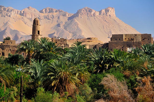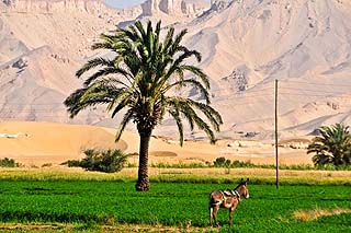 A reggel hűvös volt, de jó illatú. Reggeli után indultunk tovább az innen jó 200 km-re levő Dahkla oázis fővárosába Mutba. Az oázis neve arabul valamiben lévőt jelent. Mintegy 600, zömmel meleg vizű forrás található itt. Lakossága 70.000 fő, akik 23 vályogtéglás épületekből álló faluban laknak. Rizs, mangó, narancs, datolya, búza, zöldség termesztésből élnek. Szerintem ennek az oázisnak a lakói messze a legszorgalmasabb emberek Egyiptomban. Napközben, még a meleg ellenére sem látható ücsörgő, vízipipázó ember. A földek szépen megműveltek, a lakosság, vagy a földeken dolgozik, vagy szamarán, szamaras kocsiján szállítja a terményt. Szalmakalapos, bekötött fejükkel inkább hasonlítanak latin amerikai lakosokhoz, mint arabokhoz.
