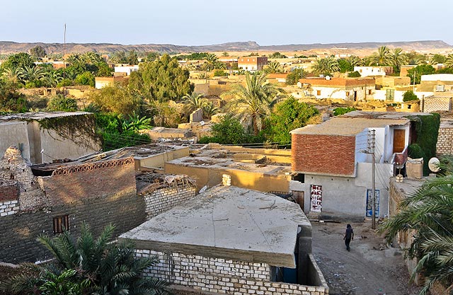 Szálláskeresés miatt megálltunk Ezbet Nasser nevű faluban, ahol beduin stílusban épült kupolás bungalókból álló tábort találtunk. Mivel a hely jónak ígérkezett, de sajnos mindentől távol volt, úgy döntöttünk, hogy tovább megyünk El Kharga felé. Végre elértük a fővárost, mely széles, kétsávos főutakkal, három körfogalommal és a főtéren szúkokkal, boltokkal, büszkélkedhet. Itt lakótelepek is állnak, négyemeletes, előre gyártott anyagból készült kockaházak, az Új Völgy program bizonyítékaként. Az utcákon kevesebb a szemét, mint a Nílus-völgyi városokban, de több a por, a sivatag közelsége miatt. A forgalom sem olyan őrült módra zajlik, mint ott.