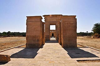 Negyed négyfelé érkeztünk a Hibis templom romjaihoz. A templom Egyiptom perzsa megszállásának egyetlen kőből épült bizonyítékaként pálmaligetek között áll. Kettő pülón-szerűség és egy fedett szentély, előtte oszlopcsarnok. Az első pülón előtti jobboldali oszlopon görög nyelvű felirat. A második pülón mennyezetén még eredeti színeiben pompáznak a vésetek.