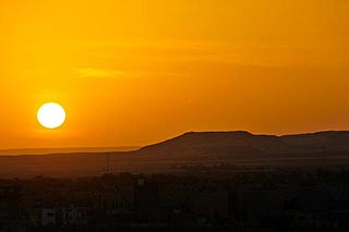 . Ez az erősség védte északról Khargát. A naplemente gyönyörű volt. Érdekes, hogy ezen a földrajzi szélességen nyugodtan belenézhetünk a nap korongjába. Az ég sárgásvörösen izzik, míg a korong látszik, majd a horizont alá bukik és pár perc alatt koromsötét lesz. Most érthetjük meg igazán az óegyiptomi emberek gondolkodását a napról és az alvilágról.