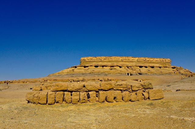 Reggel már fél nyolckor indultunk el. Búcsút veszünk a rendezett oázistól, az aranyló gabonaföldektől, melyeken már megkezdődött a betakarítás, a rétektől, melyeken tehenek legelésznek békésen, a szamárháton közlekedő parasztoktól. Az oázis nyugati kijáratánál pár kilométerrel Al Qasr után található egy hegy, amelyben és annak környékén i.sz. II. századi sírok vannak. Itt megálltunk. A hegy olyan, mintha lakások lennének benne, csakhogy ezek sírok, melyek bejáratai sűrűn egymás mellett állnak.