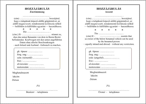 Egyik olvasónk, Deli László évek óta gyakorolt saját módszerét ajánlja másoknak is. Az egykor az Autóklub által adott nyomtatvány mintájára készített saját nyilatkozatot magyar, német és angol nyelven. Mint írta, eddig még mindig, mindenhol elfogadták a papírt.