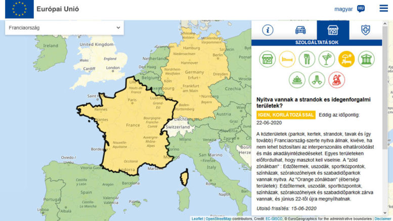 Az Európai Bizottság ma elindította az Európán belüli utazás és idegenforgalom biztonságos újraindítását támogató, Re-open EU elnevezésű internetes platformot. Az oldalon országonként több kategóriában kereshetjük az aktuális szabályokat.