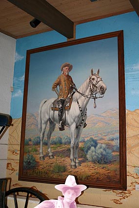 A múzeum melleti épületben a megszokott emléktárgy halmaz. Van itt korabeli metszet, képeslap, sarkantyú, cowboy kalap, indián csodaszerek és ki tudja még mi minden. Egy szóval a megszokott giccs gyüjtemény, mely úgy néz ki vele járója az ilyen kiállitásoknak. Az épület másik végén egy falatozó. Dél elmult régen igyhát szétnézünk. Hamar megállapitjuk hogy azért nem vagyunk elég éhesek hogy itt együnk, dehát nem is ezért jóttünk ide.