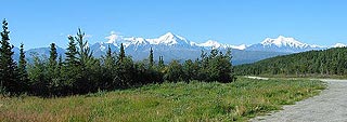 Lassan már lehet látni az Alaska hegyvonulat hófedte csúcsait, a Deborah (3761m) illetve Hayes (4216m) csúcsokat. Innen már Alaska legrégebbi autóútján a Richardon Highway-en vagyunk.