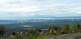 A tömegböl elég volt, úgy határozunk elmegyünk a Chugach Nemzeti Parkba. Ugy is tettünk és nem bántuk meg. Igaz csak a park szélén járkáltunk, de így is remek kilátás nyilt az alattunk terülö Anchorage városára valamint a Cook-öbölre.