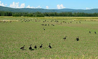 Útban a Fairbanks-i egyetem fele megállunk a Creamer’s Field vándormadár menedéknél. Szerencsénk van, a hatalmas mezö tele daruval, vadlibával, egy-egy réti héjja, sólyom és hattyú is ide tévedt. A madarak járkálnak, csipegetnek, és úgylátszik már megszokták hogy nézik öket, rá sem hederitenek.