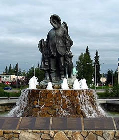 A megszokott reggeli dupla fekete után a város központjában sétállgatunk A Golden Heart Plaza környéken. A tér közepén a szökökút mellett egy inuit család szobra állit emléket az elsö telepeseknek.