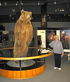 A következö megállónk a Fairbanks-i Egyetem területén épült Museum of North, azaz észak muzeuma. Modern épület, 2005-ben épitették, alapterülete egy bálnára emlékeztet. Mint ahogy a leirásban is tudatnak, ez nem egy konvencionális muzeum, hanem igyekszik Alaszka jelleméhez, természetéhez igazodni. Többek többek között két féle müvészetet különböztetnek meg; az utilitáris, mindennapi használati cikkek müvészetét, ilyen például egy fonott kosár, meg a klasszikus értelemben vett müvészetet mint például a portré festészet. Van természettudományi részlete, itteni állatokkal, a grizli medve sokkal nagyobb volt mint elképzeltem, etnikai, történelmi részlege. És mint talán várható is, legnagyobb kiállitott arany és aranyérc itt található. Érdemes volt megtekinteni.
