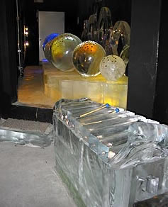 Innen a jégmuzeumba megyünk, egy rövid bevezetö után megtekintjük a kiállitott jégszobrokat. Szépek, különösen egy jég xylofon nyeri meg tetszésem, még zenei hangokat is ad ki, de sietünk, mert hideg van, máskülönben a müalkotások megsemmisülnek.