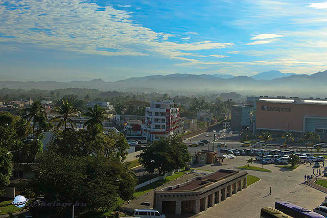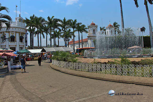 Habár még reggel van, az idő meleg, szerencsére a busz azonban légkondis. A hajónk a város északi részén kötött ki, így hát indulunk az óceán partján délre az óváros irányába. Az út forgalmas, üzletek, irodák sora, pálmafák, és más déli növények sokasága. Hamarosan megérkezünk az ismert tengerparti sétányra a Malecon-ra. Szerencsére csak gyalogosoknak van fenntartva. A sétányt számtalan szobor díszíti, a legismertebb talán egy tengeri csikó, melyet egy hurrikán egyszer elsodort, de visszaépítették. A sétánytól nem messze a hires templom az Iglesia de Nuestra Senora de Guadalupe, mely Mexikó védszentje a Guadalupei Szűz Mária temploma. Tornya érdekes, Maximilian királyné koronája után készült. Sok az üzlet, látszik a város ezen része a turizmusból él meg és mint olyan rendezett. Egy kissé bennebb haladva azonban kezd elhanyagolt lenni.