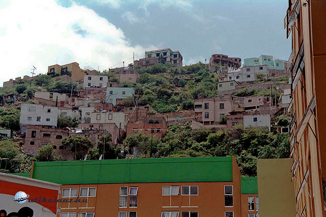Ma reggel csak 34oC volt, szerencsére a busz légkondicionált. Crucecita városa közel van, itt még olcsó szállodák vannak, állítólag USD 20-ért lehet aludni. Egyike Mexikó legszegényebb vidékeinek, minimum átlagbér USD 5 naponta.