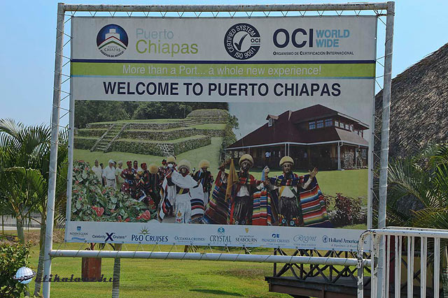 Ha Huatulco szegény volt, akkor Puerto Chiapas nagyon szegény. Maga a kikötő egy elég szerény hely, egy pár ház az öbölben, egy pár vendéglő, egy templom. Nincs mit nézni, indulunk Izapa fele ahol a piramis romokat hirdetnek. Útközben, egy-egy ház, de nagyon gyatra állapotban. Útikalauzunk szerint két évszak van, az esős és a száraz. A száraz évszakban három hőmérséklet ismert; meleg, nagyon meleg és forró. Ma csak meleg volt 32oC. Idegenvezetőnk szerint 48oC volt a legmagasabb hőmérséklet amit mértek. Főleg mezőgazdaságból élnek, a turizmus csak most kezd alakulni, de ahogy kinéz még sokat kell fejlődnie. Havonta, a száraz évszakban, 2-3 hajó áll meg a kikötőben ami nem sok. Termesztenek, kávét, kakaót, banánt, lyche-t, mangót.