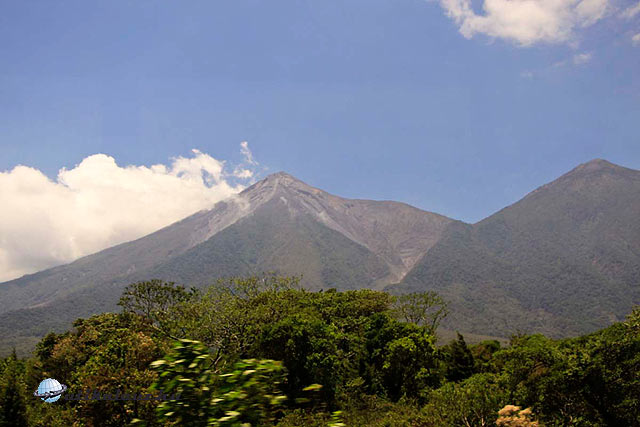 Puerto Quetzal Guatemala legnagyobb kikötője a Csendes Óceán partján, fontos gazdasági központ. Turista jeletösége azonban nincs. Érdemes azonban rászánni 90 perc autókázást és elmenni Antigua-ba, Guatemala egykori fővárosába, mely egyik legjobban megőrzött emléke az egykori spanyol birodalom építészeti stílusának. Az út kezdetben cukornád ültetvények mellett halad, később azonban emelkedni kezd s megjelennek a kávéültetvények. Jobb oldalunkon az Aqua, balra pedig az Acantenango és Fuego tüzhányok csúcsai emelkednek. Az idő kellemesen meleg, az ég is szinte felhőtlen, de a sok villanyvezeték, meg fa miatt nehéz egy-egy pillanatot megragadni fényképezésre. Kár hogy buszunk nem áll meg Antigua -ig. És mint ahogy az lenni szokott, mire megékezünk és lehetne egy pár képet készíteni, mindhárom csúcs felhőbe burkolózott.