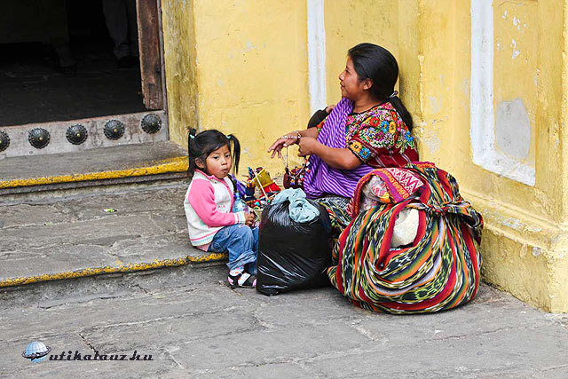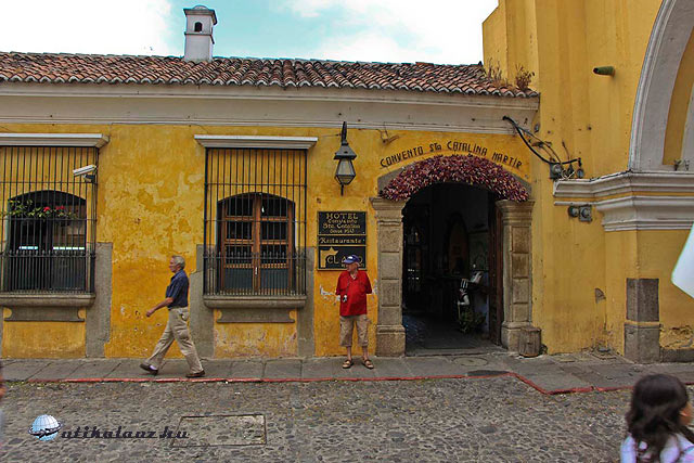 Vissza fele egy kitérőt teszünk, megnézzük a Kapucinusok templomának romjait, mely aránylag jó állapotban van. Két lakószobát restauráltak, azokat meg lehet látogatni. Útközben elég gyakran találkozunk árusokkal, akik igyekszenek eladni portékáik. Van itt bambuszdob, babák, jó színes népművészeti cikkek. Mi ellenállunk a kísértésnek, inkább betérünk az egyik kávézóba a központi part egyik oldalán, és nem bántuk meg. A süti amit vettünk elég átlagos volt, de a kávé, a kávé az hét nyelven beszélt. Az egész kirándulás legfinomabb presszója Guatemalában volt.
