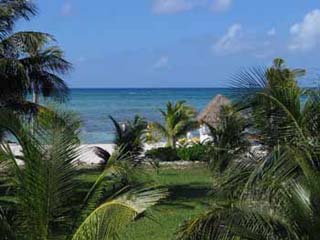 A szarazfold feloli hosszu oldal tunt inkabb az allandoan lakott ófalunak; vegig elenk szinu, kopottas, lapostetos hazakkal. Az ocean feloli oldal mar ritkabban volt lakott, ott elszortan elegans villak alltak a sziklas tengerparton. A sziget egyik vegen volt a “fovaros” a masik vegen pedig a Garrafon nevu vizivalami (mint Xel-Ha). Ez sokkal kissebb Xel-Hanal, de nem kevesbe lenyugozo. Ezt nem probaltuk ki, de az egyik dombtetorol festoi panorama nyilt ra. Lementunk viszont egy strandra mashol, a sziget szarazfoldfeloli oldalan – az ugyanis vegig homokos partu, sekelyvizu. Nem furodtunk vegul, csak rapihentunk a motorozasra kicsit es elveztuk a feher homok + palmafa + kek tenger latvanyt. A sziget vegen van egy vilagito torony egy dombteton, amibe fel is lehetett menni. Na onnet aztan volt vmilyen a kilatas!!!! Nem is probalom leirni, csak fotokkal tudnam megkozeliteni a hatast! Kozben Patri vett a torony toveben egy kokuszdiot, az orrunk elott belevarazsolt szivoszallal egyutt, de igazabol egyikunknek sem izlett a leve. Legalabb megprobaltuk!