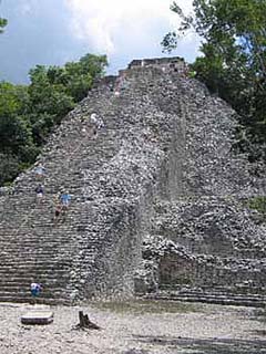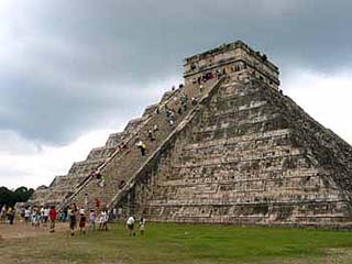 Utolsonak hagytuk a legjobbat, a nagy piramis (Tollaskigyo- vagy Kukulkan-piramis) megmaszasat. Ez nem annyira magas, mint az egyiptomiak (csak 25m), viszont az oldalai rendesen meredekek. Mindegyik oldalan egy lepcsosor. A maják csillagaszati ismereteire még jellemzo, hogy a negy oldalon levo lepcsok osszege pont 356, ill. a piramis oldalai pontosan a negy egtaj iranyaba neznek! Az europaiak elott mar evszazadokkal azt a szisztemat hasznaltak az ev napjainak kiszamolasaban, amit mi csak a Gergely-naptarral ismertunk meg.