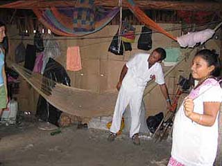 Még odafele kert minket az idegenvezeto, hogy ne adjunk penzt, szensavas uditot, meg hasonlokat a gyerekeknek, mert egyreszt csak elrontanank oket es egy ido utan mar elvarnak a turistaktol; masreszt ezek nem reszuk az eletuknek amugy sem. Az egyik hazban amit meglatogattunk peldaul logott a falon egy Barbie baba, gyarilag lezsirozva, ahogy a boltbol kijott. Vkitol kaptak, de a gyerekek nem jatszanak vele. Olyan, hogy babazni, az nem jatek nekik. Most a falon log, dekoraciokent… Viszont hintazni a fuggoagyban peldaul teljesen jo moka:) A trukkosebbek jatszanak olyat is, hogy a skorpiot megszabaditjak a fullankjatol, beteszik a polojuk ala, es jokat nevetgelnek, ahogy az csiklandozza oket:) Vagy pedig levagjak a tarantula pok harapos reszet, meg talan a fejet(?), igy onnet kezdve az csak egyenesen tud menni. Aztan versenyeztetik oket! Akie nyer, annak mondjuk felmentes a hazimunkabol. Mennyivel izgalmasabb, mint a Nintendo, nem?!:) Még az esti hokusz-Fokuszban is bent lenne nalunk!:)