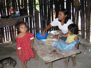 Lattuk meg egy csalad házát, ott a fiatal haziasszony epp kukoricalepenyt (tortillat) sutott, korulotte a sok gyerek. Itt is volt vagy fel tucat. Megkostoltuk a lepenyt, jo izu volt!