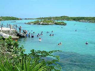 Egy laguna, ami benyulik tobb szaz meter melyen a szarazfoldbe, korben zegzugos, sziklas oblokkel, es turkizkek, 1-2m-es vizzel. Teljesen valoszinutlen latvany. Pedig termeszetes kepzodmeny! Vigyaznak is ra nagyon, mezei naptejet nem is szabad hasznalni, csak olyat, ami biologiailag lebomlik. Persze nem olyanunk volt, a helszinen kellett venni. Az obol eszmenyi hely snoreklingozasra. A jegyben bent foglaltatott a felszereles berlete is, mindenkepp ki akartuk probalni. De ezen kivul még egy egesz sor lehetoseg volt szorakozasra, gyakorlatilag nem is volt eleg az egy nap! A kozponti reszen 5 kulonbozo stilusu etetohely, barok, uzletek, csomagmegorozok, mosdok, stb. Nagyon alaposan ki van epitve minden, amire szukseg lehet. A laguna menten oserdo van, amiben keskeny setaosvenyek kanyarognak es idorol idore vmi ujabb latnivalohoz jutni rajtuk: apro cenotek, pontonhid a lagunan, vizbol megkozelitheto barlang, viz folott ‘tarzanozás’ kotelen, delfinekkel uszas (plusz penzert), fuggoagyak, idilli kis tavak, madarak, rengeteg iguana (persze csak amikor epp nincs az embernel fenykepezogep…), stb, stb.