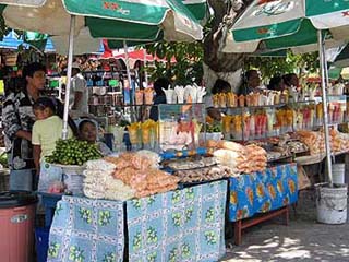 Aranyszabaly itt is, hogy az utcai kajaarusokkal erdemes ovatosan banni, nehogy futkosni kelljen utana… Kisertes van boven: sokszor nagyon kivanatos kajakat arultak, foleg egzotikus gyumolcsoket, elore megpucolva, poharakban. Nem volt konnyu ellenallni.