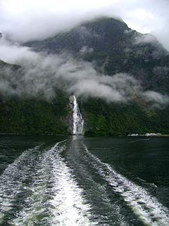 Az ébredés elég sportosra sikeredett. Tizenpár fokkal hidegebb és koromsötét. Ennek eredménye, hogy kb. 20 perc múlva már a kocsiban ültünk, irány a Milford Sound és a hajótúra. Az odavezeto szerpentin, már önmagában is mély nyomot hagyott bennünk. Egyrészt, mivel a korábbi eső miatt minden sziklafalon vízesés csordogált. Másrészt egyszer csak jött egy jó hosszú alagút (amit egyébiránt kiástak, mert a dinamit túl drága volt), ami olyan szinten lejtett, hogy kétségessé tette a visszafelé vezeto utat. A kocsink annyira birja az emelkedoket, hogy se, márpedig itt akadt boven.