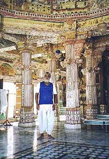 Nemsokára megérkeztük Jhunjhunuba, a Jamuna Resortban (www.shivshekhawati.com/jamuna.html) szálltunk meg, az egyszemélyes szoba 1000, a kétszemélyes 1500 R). Nagyon kellemes hely és a szobák egyszerűen fantasztikusak. Már esteledett így rohanvást indultunk tovább a Rani Sati Mandir templomba. Az esti puja idejére értünk oda, itt vettünk részt életünk első puja-ján. A templom nagy kiterjedésű, természetesen csak mezítláb lehet bemenni. Mivel nem turista látványosság, nincsenek cipőőrök és senki nem akar levenni. A templomba bevezető út mellett nagy házat építettek, ahol a rengeteg kis szoba várja a zarándokokat, akiknek ingyen van a szállás. Az emberek kedvesek voltak, odajöttek megkérdezni, hogy honnan vagyunk, egy pap még tudta is, hogy Budapest Magyarország fővárosa. Mahavir vett apró virágalakú fehér cukrot, mindenkinek adott belőle, mi is megkóstoltuk.