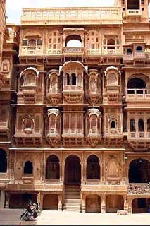 Késő délután érkezünk meg Jaisalmerba, az erőddel szemben van a szálásunk, a Hotel Sudarshanban, 800 R a kétágyas, fürdőszobás, légkondis szoba. Enyhén szólva koszos és sok a hangya. Mindegy, lepakolunk és indulás az óvárosba, megnézni a fantasztikus kőcsipkés haveliket. A legszebb a Patwon-ki haveli, a szemközti épületet Indira Gandhi lebontatta, hogy jobban rá lehessen látni a kőcsipkés erkélyekre, mert egyébként a szűk utcákon ez meglehetősen nehézkes. Ez itt valami elképesztően gyönyörű. Bemegyünk egy havelibe, amelyiknek az aljában persze bolt üzemel. A tulajdonos mutatja, hogy a közel fél méter vastag fa mennyezetet teljesen megette a szú. Az épület belül is gazdagon díszített. Felmászunk az emeltre, az ablakokból fényképezzük Jaisalmert, a haveliket, a kifeszített ágytakarókat, kelméket. Itt sem ússzuk meg vásárlás nélkül. Egy következő épületbe is bemegyünk, az emeltről fényképezünk itt is, a galéria olyan keskeny körben, hogy alig lehet elférni. A földszinten textília bolt van. Leültetnek a belső udvar fala mellett elhelyezett padra és miközben 3-4 pasas a különböző ágytakarókat teregeti ki az udvarra szopogatjuk a teánkat. Itt nagyon dívik a tükördarabokkal való kivarrás, állítólag rajahstani hagyomány. Nem tetszenek, túl tiritarkák, de anyósom lelkes. Végül vesz egy hatalmas ágytakarót 150 dollárért. Itthoni árakhoz képest nem drága.