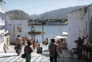 9 körül indultunk tovább Udaipurba. A táj gyönyörű volt, hatalmas sziklák tarkították a hegyoldalt és a sziklák közötti szigeteken zöldelltek a termények. Akkurátusan kiépített csatornarendszerből öntözik a földeket, láttunk egy kutat is, ahol bivaly hajtotta a kereket. Mintha az ősi időkbe csöppentünk volna. Ezek az emberek itt iszonyú keményen dolgoznak, hogy meglegyen a napi betevő falatjuk.
