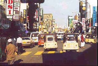 „Elveszették” nem kerülnek elő, így elindulunk a szállodába. A kb 20km-es útra egy óra kell, mert a repteret Colomboval (a fővárossal) összekötő 2×2 sávos utat meglehetősen sajátosan értelmezik a helyiek. A kb. 4×2,5 m széles aszfaltút (a sziget legszélesebb útja!) rugalmasan 2+2, 3+1, 3+2, 4+1 sávosra alakul, attól függően, hogy éppen milyen széles járművek kerülnek egymás mellé. A padkán rengeteg bódé, gyalogosok, biciklisek, az úton pedig a legteljesebb őskáoszban tuktuk-ok (motoros riksa), személyautók, buszok, teherautók hihetetlen füstfelhőket eregetve.