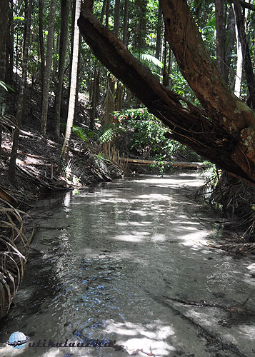Itt leborult fatönkök alatt lehet átúszni, a patak elég sebesen folyik és percek alatt levisz a tengerhez. A patakmeder mellett ma már kiépített fa járdán lehet felsétálni – nekem valahogy ez a hely elvesztette a varázsát.