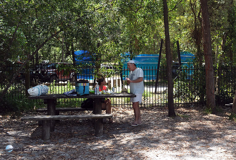 A kiszélesedő tengerparti részen fiatalok a vízben felállított sátrak alatt üldögéltek és nagy mennyiségű sört fogyasztottak. (Itt jegyzem meg, hogy másnap délelőtt a parti homoksávon autózva hirtelen egy rendőr került elő és megfújatott … ezt se hittem volna). Mi is lebzseltünk egy darabig, majd elindultunk északra az Indian Head nevű kiszögelléshez, mely a 125 mérföld hosszú tengerparti sáv vége.