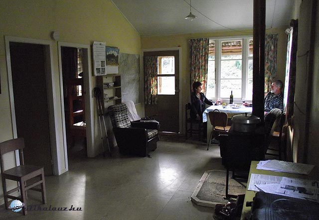 A lemenő nappal együtt érkeztünk meg a szállásra. Mivel a levegő érezhetően lehűlt, bedurrantottuk a kis vaskályhát. Bár volt gáztűzhely, a vacsorát is ezen a vaskályhán készítettük el, márcsak a romantika kedvéért. Persze forróvíz is volt, egy jó zuhany után nem kellett sok a mély alváshoz.