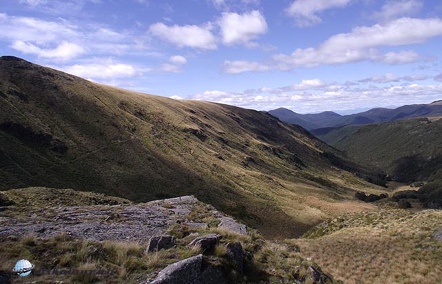 A túra legnehezebb része másnap következett – ezt persze nem tudtuk előre. Mintegy 800 méteres szintkülönbség, elég meredek hegyoldalak és göröngyös, sziklás utak tették változatossá ezt a napot. (Cobb Reservoire, NZ) A Peel tó után még egy kb. másfél órás gyaloglás árán egy teljesen kopár fennsíkra érkeztünk, ahonnan fantasztikus, 360 fokos kilátás nyílt a környező hegyekre. Itt hosszabb pihenőt tartottunk, megebédeltünk és friss forrásvizet ittunk. Kb. délután 2 óra lehetett amikor elindultunk vissza; 4 órás út állt előttünk. Nem is tudom mi rosszabb, felfelé vagy lefelé menni a meredek lejtőkön. Mondanom se kell, mire visszértünk, újabb vízhólyagokkal gazdagodtam.