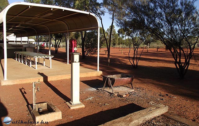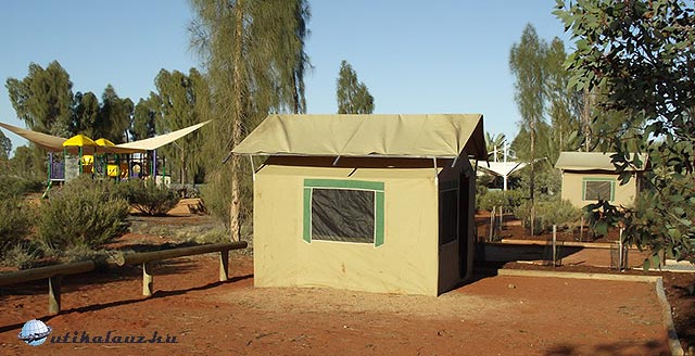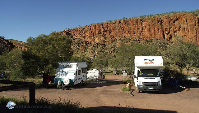 Mivel itt augusztusban tél van, éjjel 3 fok volt. Nappal sem ment fel 20 fok fölé, ami a legjobb hőmérséklet kirándulásokhoz. Szerencsére volt elektromos fűtés a kocsiban. Ebben a kempingben négy személyre mindössze 25 dollárt fizettünk, mert kényelmes városi emberek lévén egy elektromos hálózathoz kapcsolódó helyre álltunk be. Másnap reggel gyors reggeli és irány Uluru.