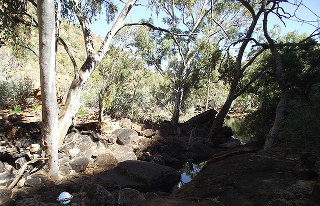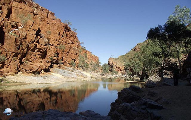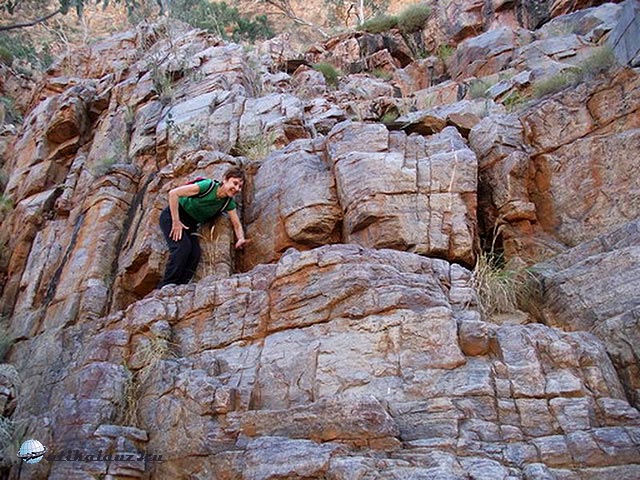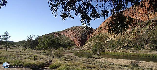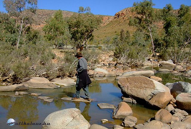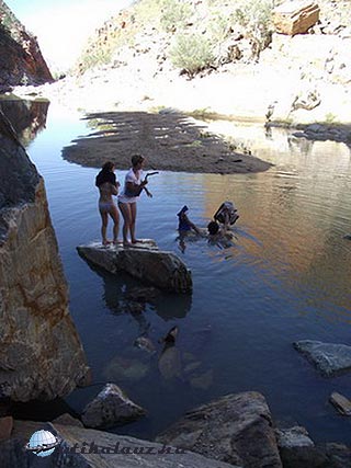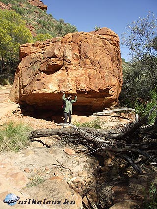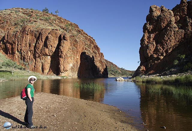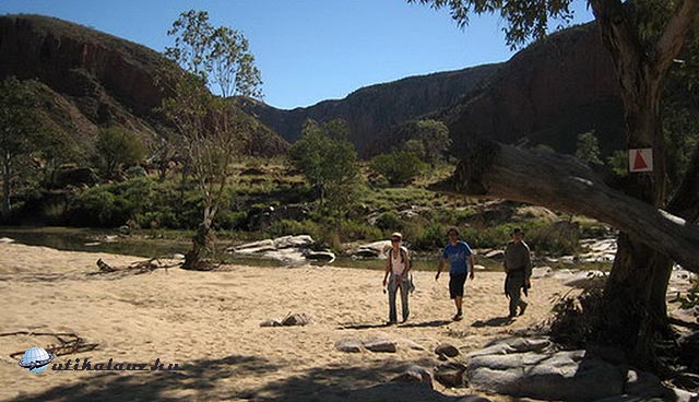Másnap reggel ragyogó napfényre ébredtünk. Mindenki szedelőzködött, ezeken a helyeken az emberek csak 1-1 éjszakára maradnak. Sok ismerős lakókocsit láttunk, sokan ugyanezt a kört tették meg. A következő állomás, “Ormiston Gorge” csak pár kilométerre volt. Leparkoltunk és irány a kanyon. Már elég tapasztalattal rendelkeztünk, vittünk felsőruhát és elegendő vizet is. Táblák sora figyelmeztetett, hogy néhány kilométerre innen át kell gázolni a patakon. Hogy ez konkrétan mit jelentett, fogalmunk se volt. Úgy döntöttünk, elindulunk, majd meglátjuk, legrosszabb esetben visszafordulunk.