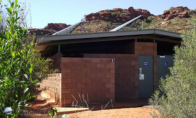 WC az út mellett napelemmel