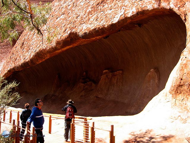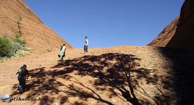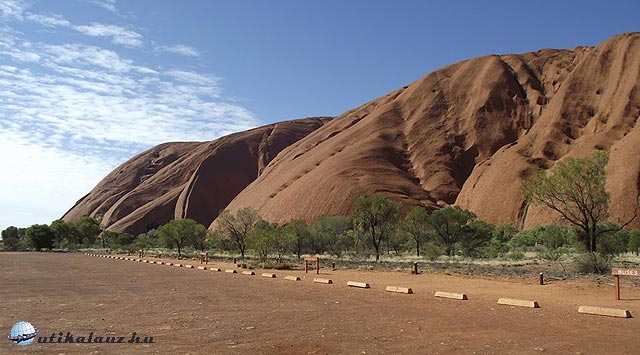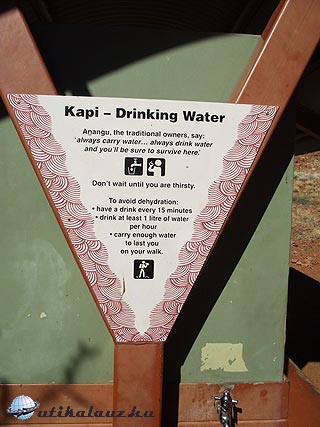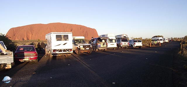 Miután megnéztük a kempinget, irány a szikla. Az előző kijelentésekkel kissé ellentétben az Uluru Nemzeti Parkba fejenként 25 dollár a belépődíj, ami 3 napon át korlátlan be és kilépést biztosít. Mentségükre legyen mondva, hogy ez egy remekül megszervezett hely, mindenütt kitűnően megjelölt turistautak, magyarázó táblák, pihenőhelyek, vízcsapok és egyéb szolgáltatások. Eltévedni szinte lehetetlen, pedig elég nagy a terület, hiszen nemcsak a Sziklát, hanem a szomszédos sziklacsoportot (az Olgákat, mintegy 45 km-re) is magában foglalja.