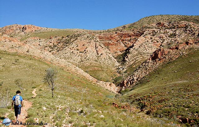Tehát, ismét az országút. Már csak kb. 200 km volt hátra a MacDonnel Ranges-nek nevezett látványosságig. Ez a hegylánc Alice Springs-től nem messze indul és párszáz kilométeren át húzódik keleti irányba.