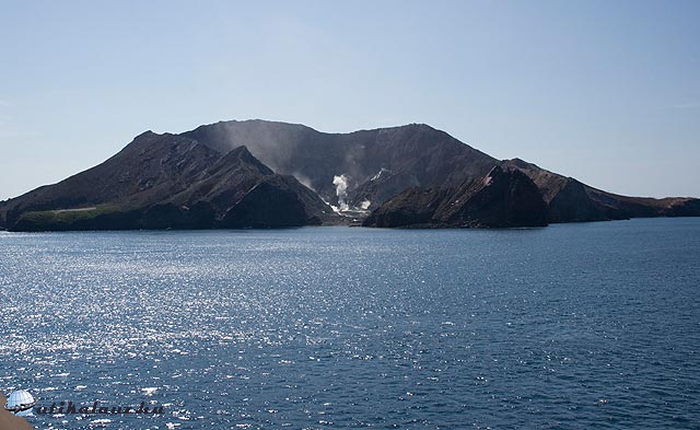 Délutánra a White Island  sziget mellé érkezünk és első pillanatban nem tudom miért nevezték el fehér szigetnek, hiszen minden fekete rajta. Egy-egy kráter melyből fehér gőzök szállnak az ég felé. Kénes gőzök.