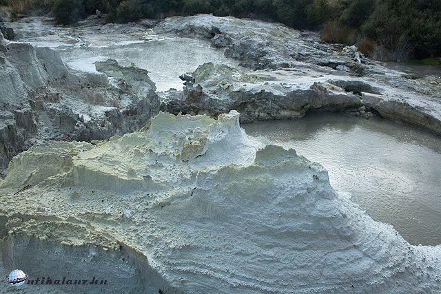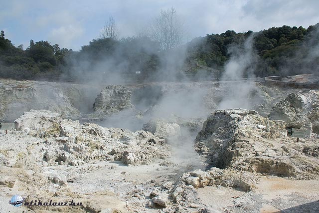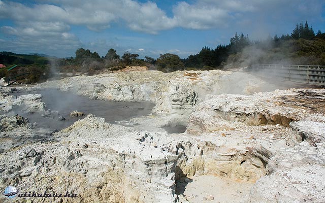 Elsőnek a Pokol Kapuja (Hells Gate) vulkanikus parkot látogatjuk meg. Fortyogó iszap, feltörő kigőzölgések áradata, különböző színű lerakodások mindenütt. Maori neve Tikitere, a Pokol Kapuja elnevezés pedig állítólag Bernard Shaw-tól származik, ki látogatása alkalmából azt mondta, ilyennek képzeli a pokol kapuját. Én nem lennék ilyen optimista, de idővel (lehet, hogy) kiderül. A maorik főzésre és melegítésre használták, gyógyító hatását is ismerték.
