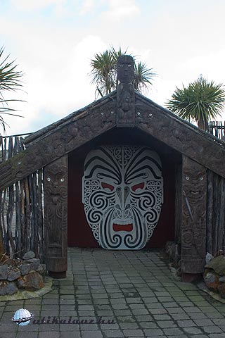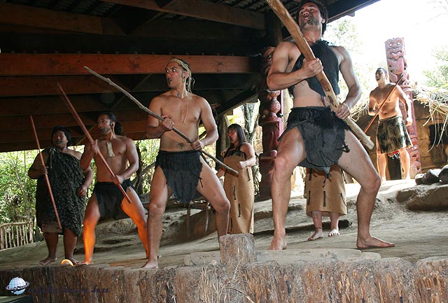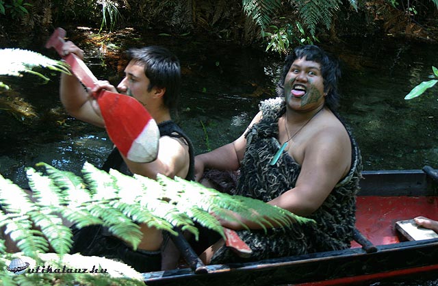 Következő állomásunk a Tamaki Maori Falu (Tamaki Maori Village). Megérkezésünkkor fogadás ceremónia maori szokás szerint. Mivel a maori törzsfőnök nem beszél rangján aluli képviselővel, csoportunkból is választani kell egy törzsfőnököt. Könnyű feladat, akad önkéntes. A maorik meggyőződnek, hogy jó szándékkal jövünk, befogadnak.